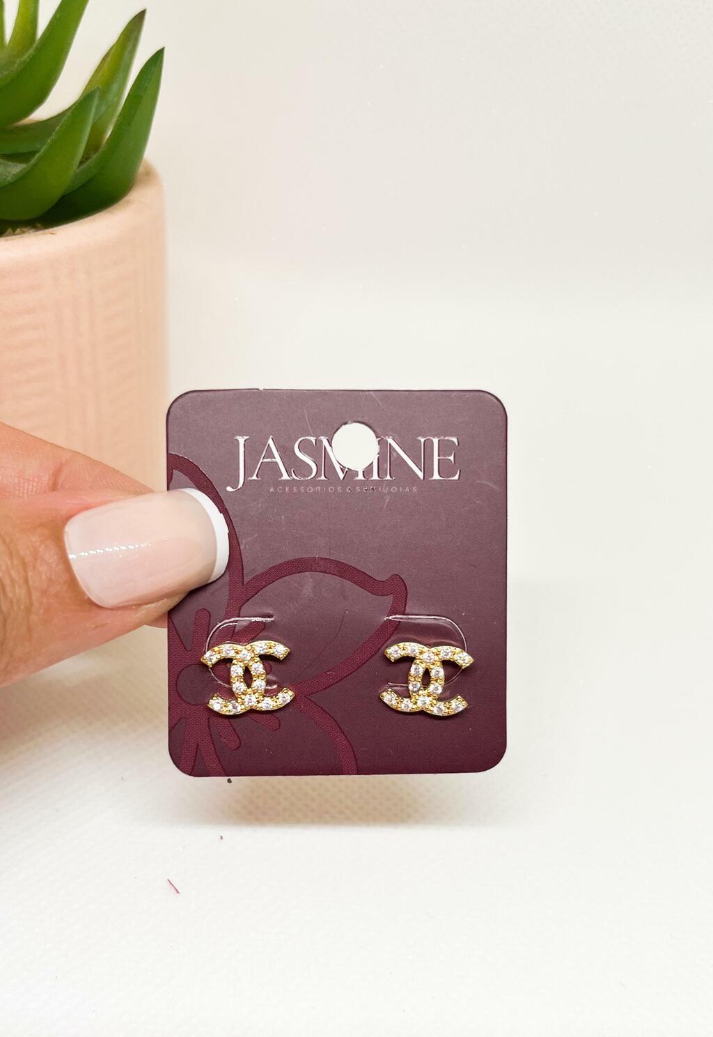 Brinco Fixo Channel Cravejado Banhado a Ouro